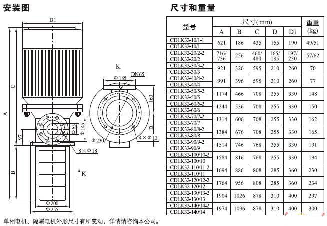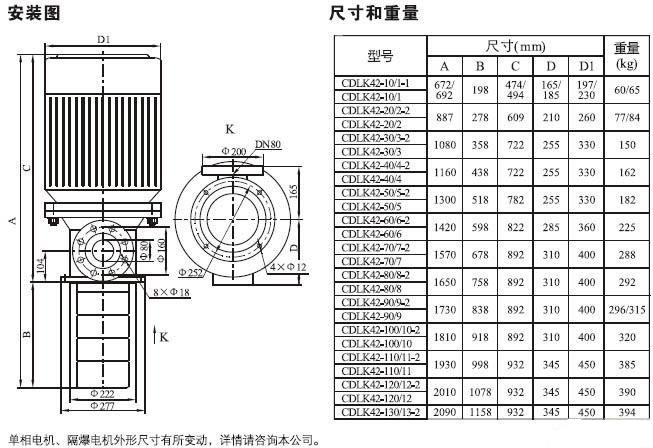 CDLK/CDLKF?為安裝標(biāo)準(zhǔn)電機(jī)的非自吸式多級(jí)離心泵,電機(jī)軸通過(guò)泵頭用聯(lián)軸器直接與泵軸聯(lián)接,泵可根據(jù)需要配置智能保護(hù)器,對(duì)泵干轉(zhuǎn)、缺相、過(guò)載等進(jìn)行有效保護(hù)。為滿足水槽或容器的安裝深度,可安裝空腔體來(lái)改變泵本身的長(zhǎng)度,不同的級(jí)數(shù)長(zhǎng)度見(jiàn)尺寸和重量表和可供產(chǎn)品范圍表。?電機(jī)為全封閉,風(fēng)冷式二級(jí)標(biāo)準(zhǔn)電機(jī)。