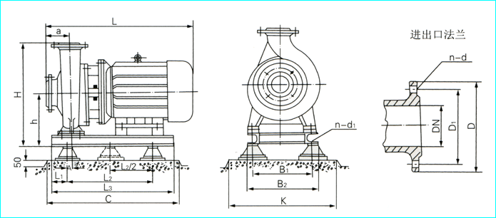 3、lSWH臥式化工泵,供輸送不含固體顆料,具有腐蝕性,粘度類似于水的液體,適用于石油、化工、冶金、電力、造紙、食品制藥和合成纖維等部門,使用溫度為-20~C~+120℃。