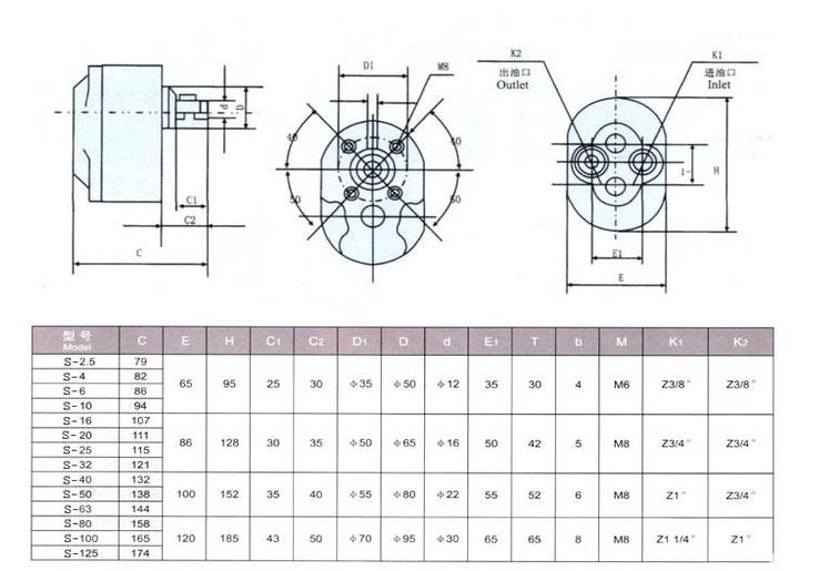 S型齒輪泵適用于輸送粘度為5-1000cst,溫度在60℃以下的不含顆粒雜質(zhì)的中性油液。主要用于石油加油站、商業(yè)、糧油及食品部門輸送機油、煤油、柴油等礦物油和各種植物油以及性質(zhì)類似的其它液體。適用于輸送噴射粘度5-1000cst,溫度在100℃以下的重油、柴油等各種燃油。主要用于各類燃油鍋爐、爐窯等爐前噴射燃油之用。